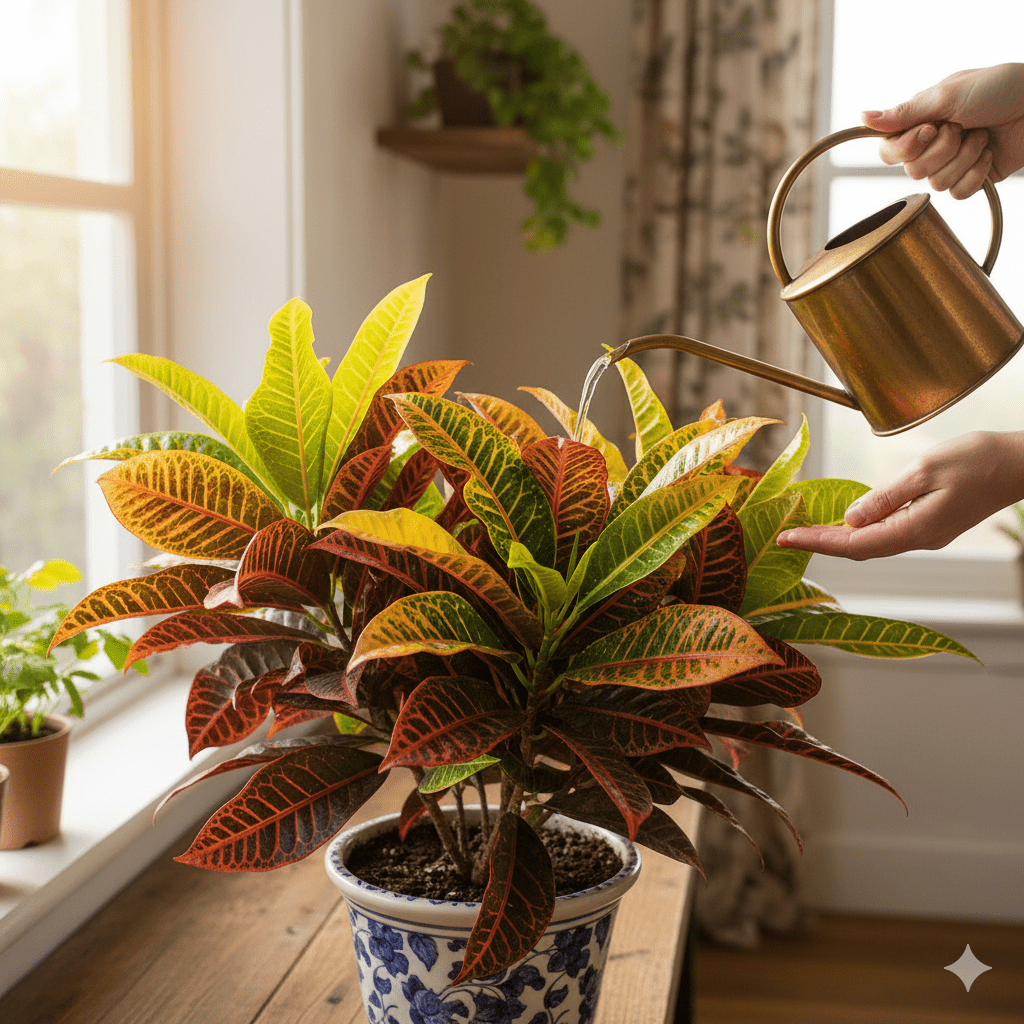 Watering is where most people make mistakes when caring for a Proton Plant. These plants like consistent moisture, but they don’t tolerate soggy soil.