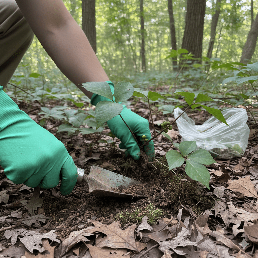 For small patches, manual removal is often the most effective. This method involves carefully digging out the entire plant, including the roots, because poison ivy can regenerate from even a small root fragment.