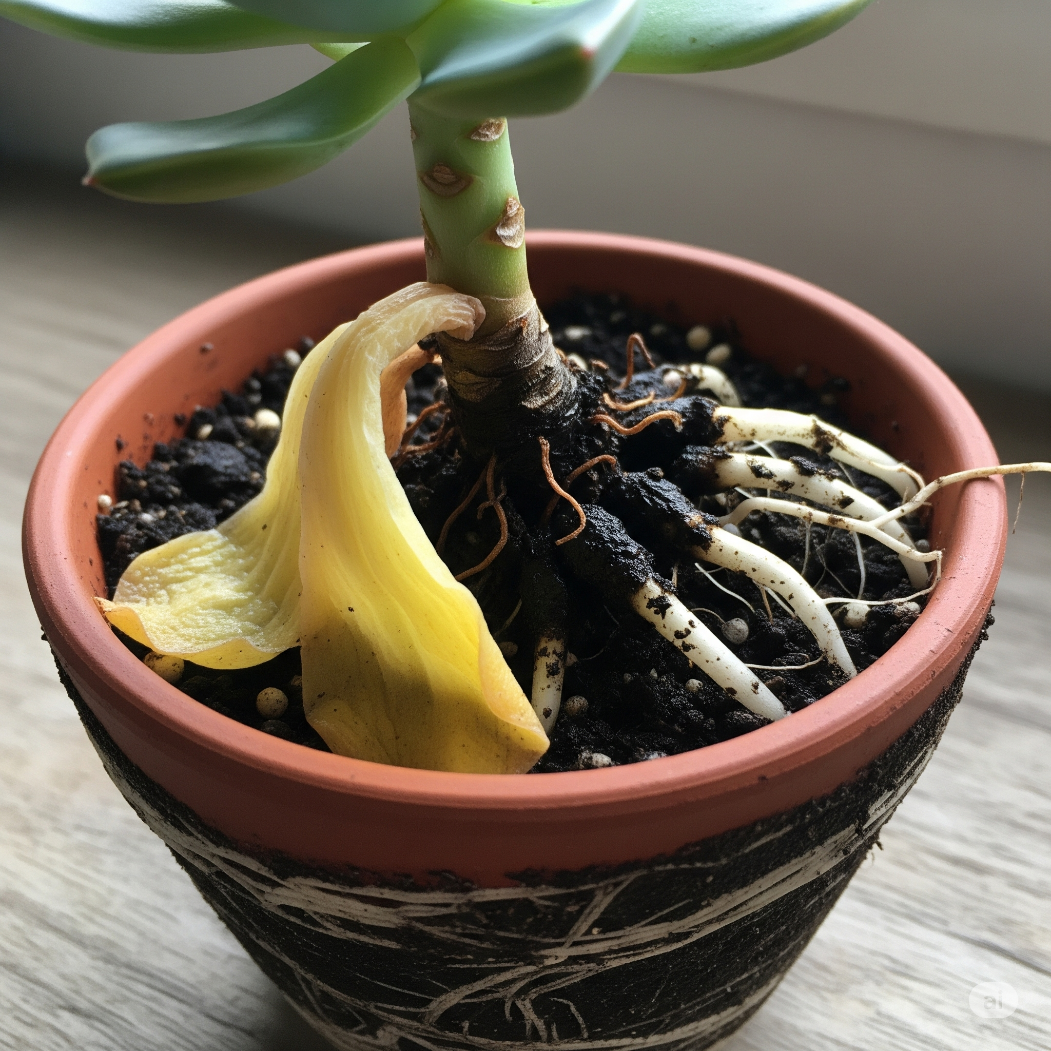 When you remove your succulent from the pot and find that some roots have turned dark brown or black, that is a sign of root rot.